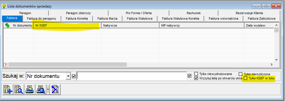 Będziemy mieli możliwość również pozostawienia na liście dokumentów, które jeszcze nie zostały przekazane do KSEF albo miały błędy i zostały zwrócone do poprawki. Do wyszukania takich dokumentów będzie służyła opcja filtrowania listy: „Tylko KSEF w toku”.