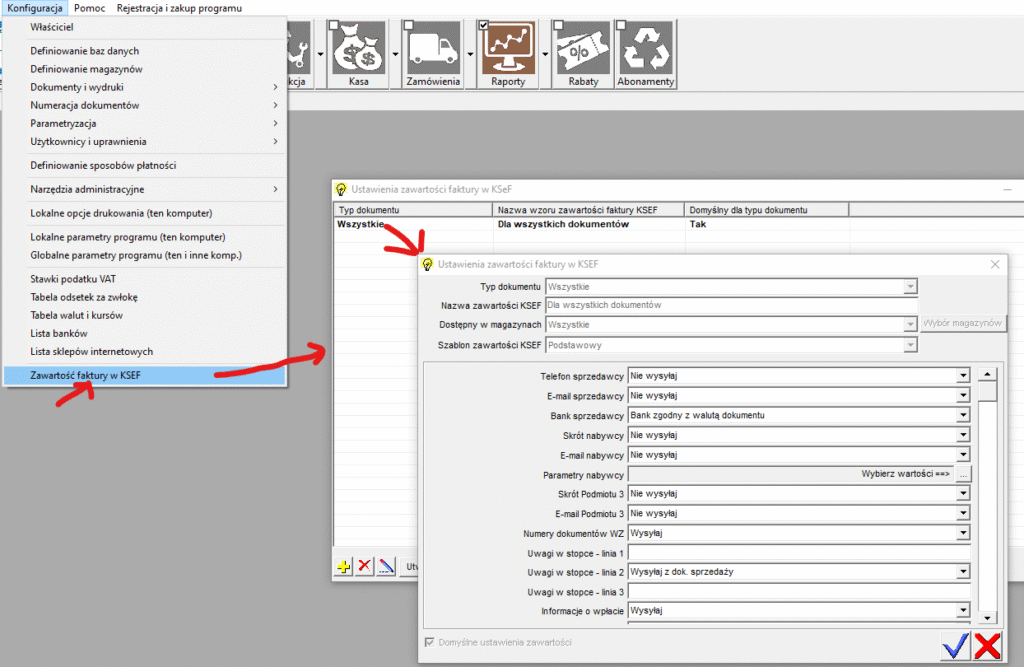 Tu określamy co ma być, a czego ma nie być widać w KSEF, bo nie wszystko z naszego systemu chcemy prezentować w KSEF.